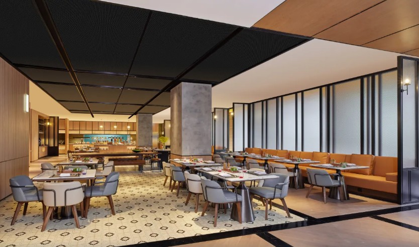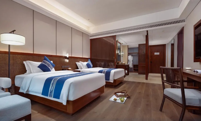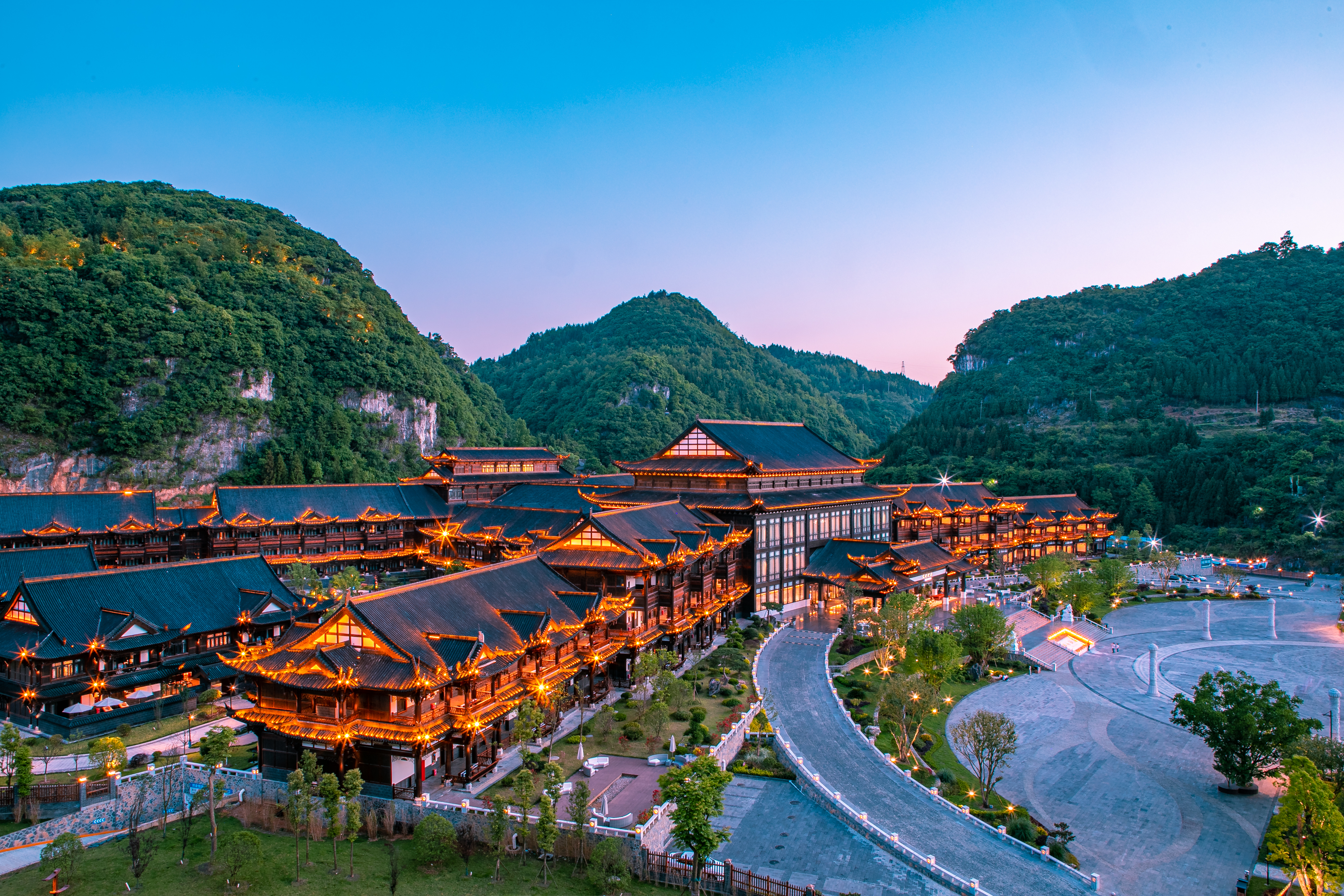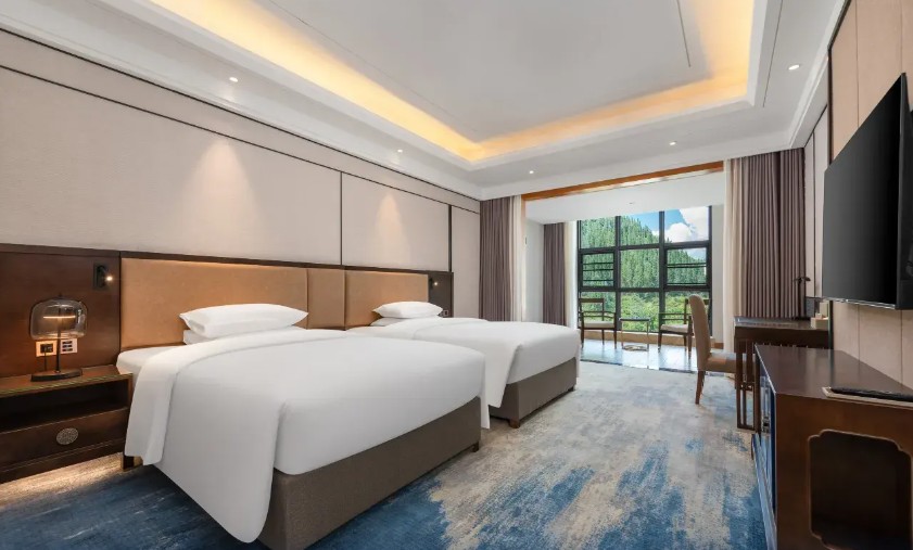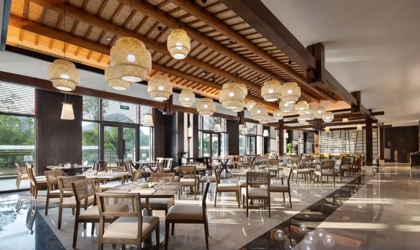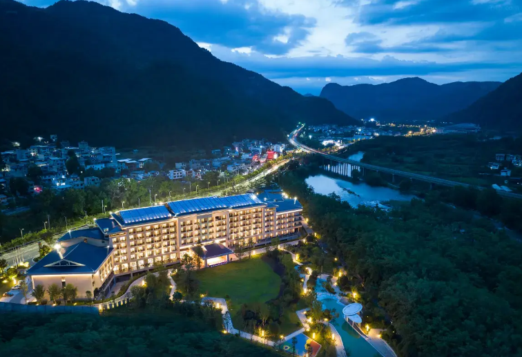 織金飯店背靠穿洞流雲主峰,面向三潭滾月景區,俯瞰平遠古鎮。由“金蝶展翅”建築群主接待區,極大規模、極具特色的一家準高星度假酒店。織金飯店獨具魅力網紅打卡點,中空3層,地域文化色彩,體現“中國風”之中的純正“織金味”。