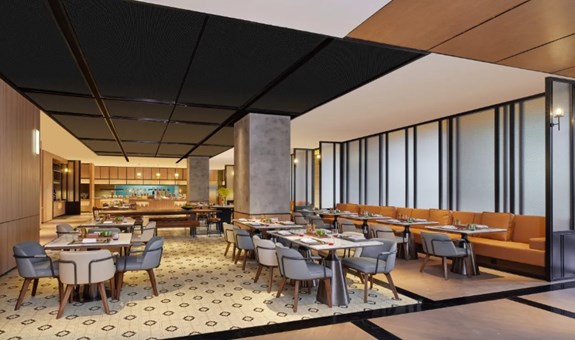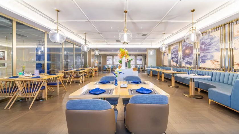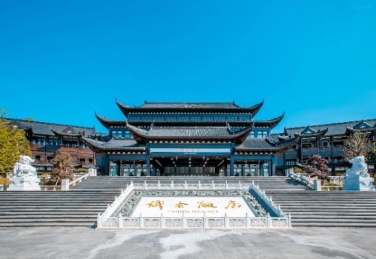 烏江寨苗王酒店在民族街區域,大堂內擺設苗族的神聖之物太陽鼓,苗族人視太陽鼓為神靈的化身,寓意守衛飯店,給遊客帶來祥和與平安。整體建築背景以苗族文化為主,融入了許多苗族元素,展現出豐富多彩的貴州文化及內涵。