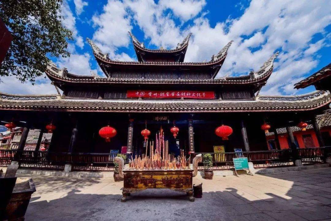 織金古城-財神廟︰位於貴州省畢節市織金縣城中心,是黔西北地區彝族文化與漢文化融合的傑作。其木構造未用一顆鐵釘,被譽為「中國第一財神廟」。秋季11月出發增遊銀杏大道。