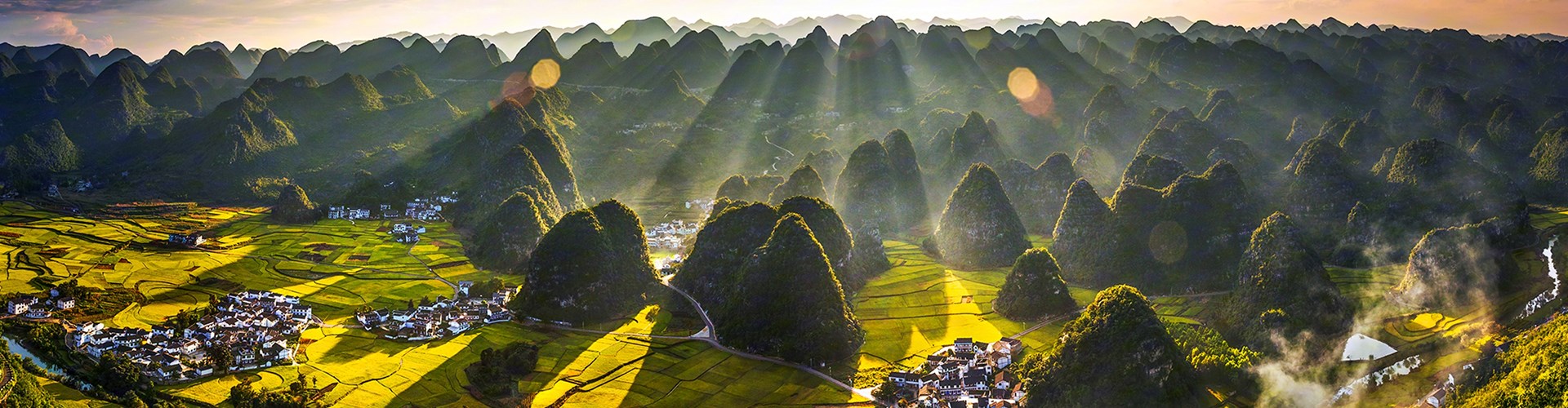 萬峰林景區: 中國西南三大喀斯特地貌之一,以「天下奇觀」「中國最美五大峰林」著稱。核心景觀:八卦田、福字田、六六大順峰等。秋季9至10月稻谷成熟金黃遍地#。