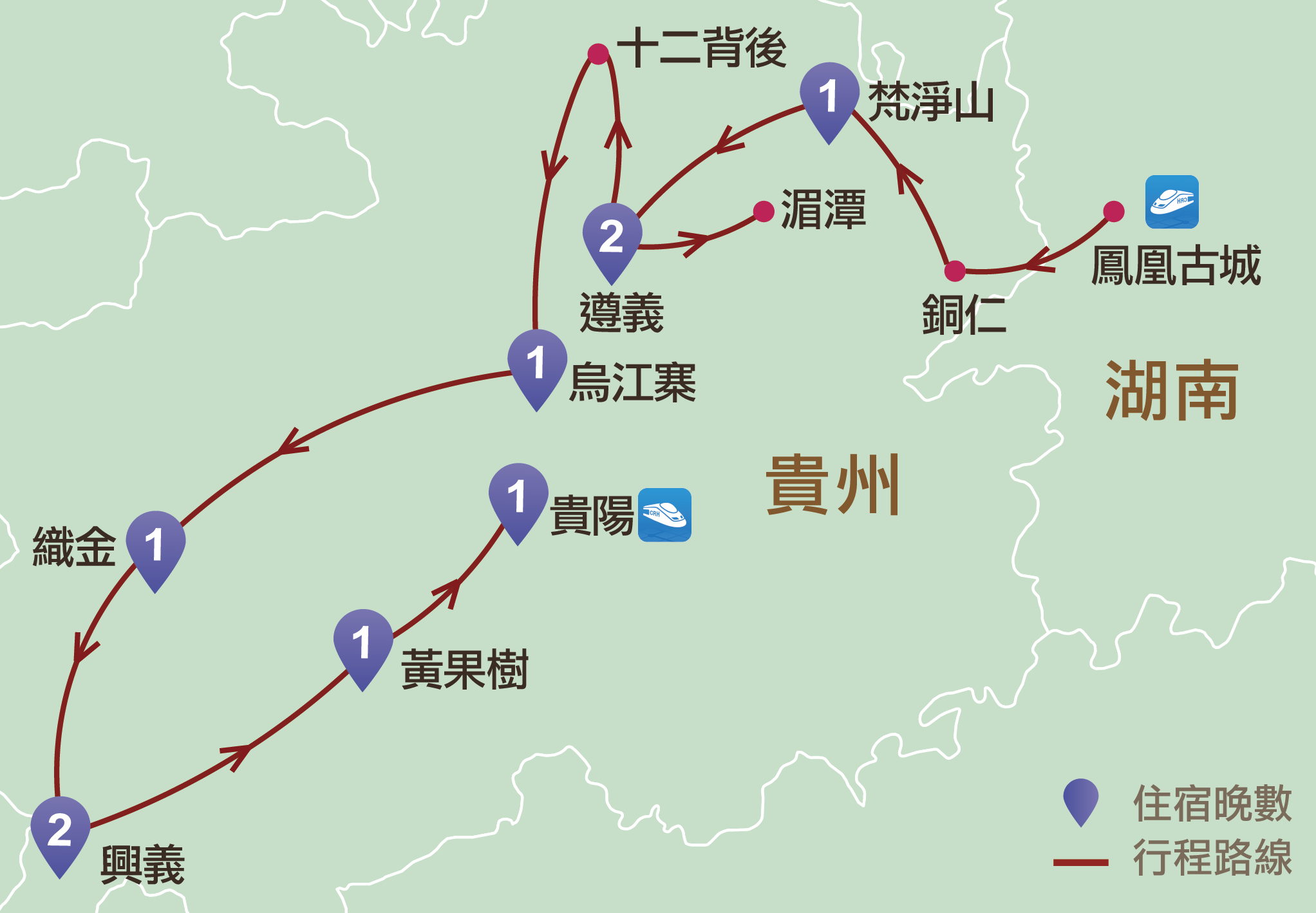 貴陽、梵淨山、遵義、湄潭、十二背後、烏江寨、織金、興義、黃果樹
