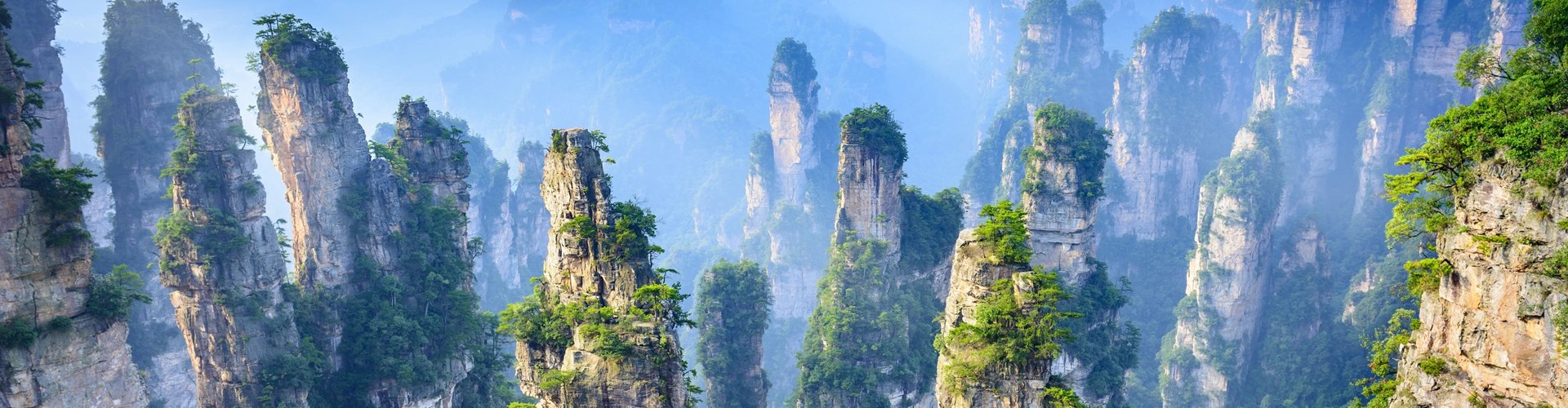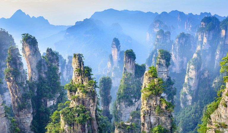 張家界國家森林公園: 因其奇特的奇峰石柱而被聯合國列入《世界自然遺產》。園區內包括袁家界(迷魂台、天下第一橋、哈利路亞山)、楊家界(峰牆奇觀、金雞破曉)及天子山(賀龍公園、御筆峰、仙女散花、雲青岩觀景台)。