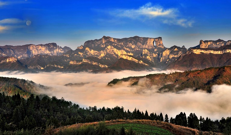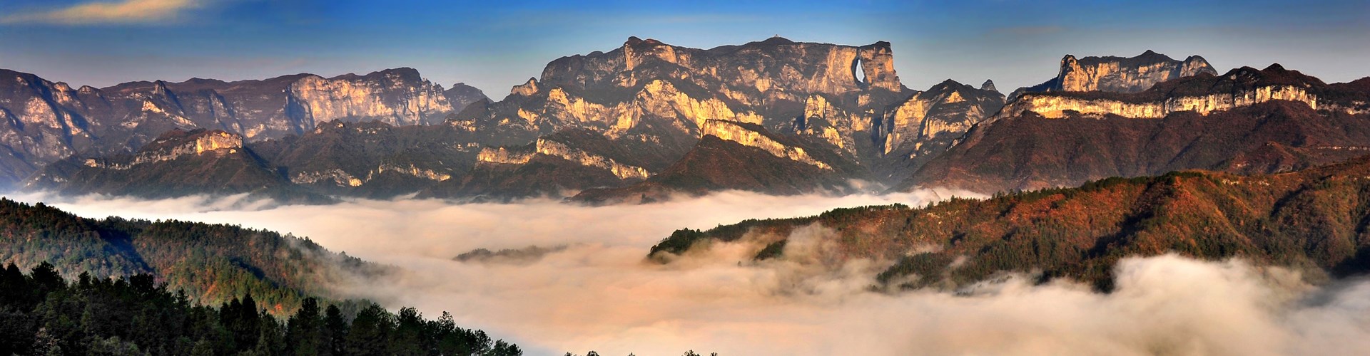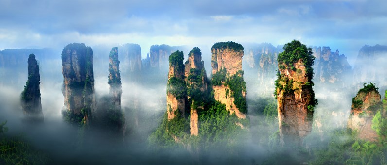 天門山國家公園: 「湘西第一神山」,擁有世上最高海拔天然穿山洞天門洞,是天門山最具代表的景點。乘纜車上山,登淩霄台,地勢高絕,雲霧繚繞,被譽為天門十景之一。
