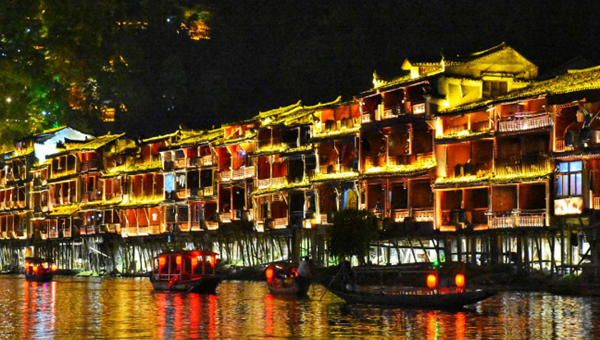 夜遊鳳凰古城: 自古以來一直都是苗族和土家族的聚居地,歷史悠久的古城也一直保存著當地民風。安排乘船夜遊沱江,觀看《湘見沱江-七重水幕光影秀》,欣賞迷人夜景。
