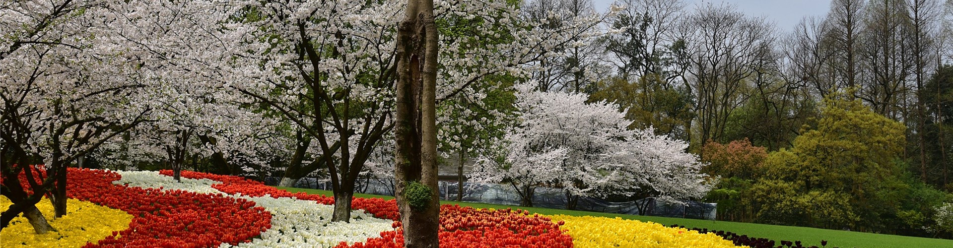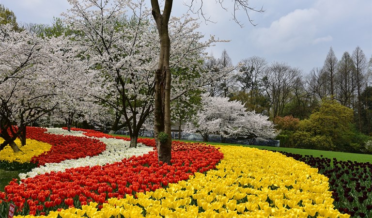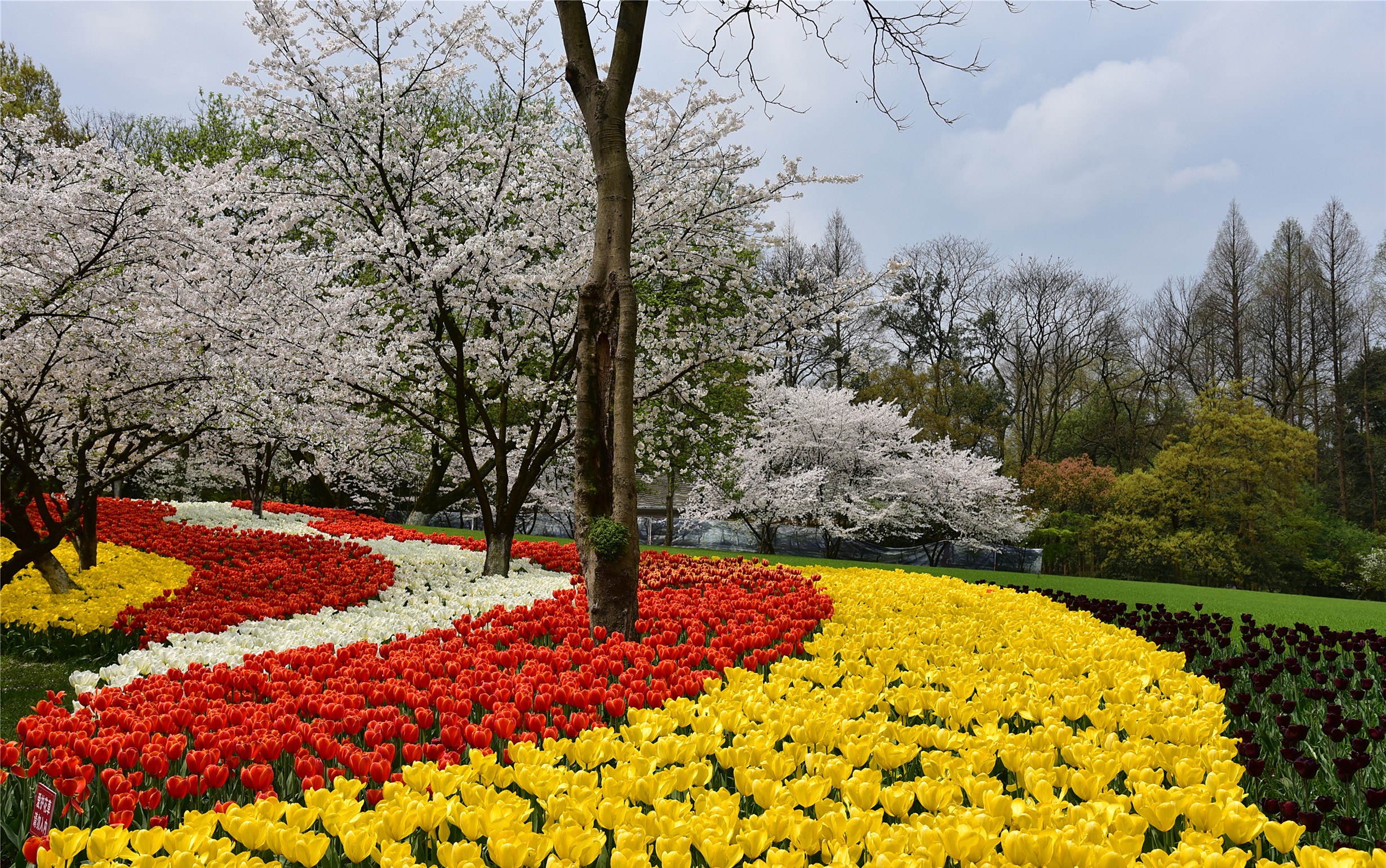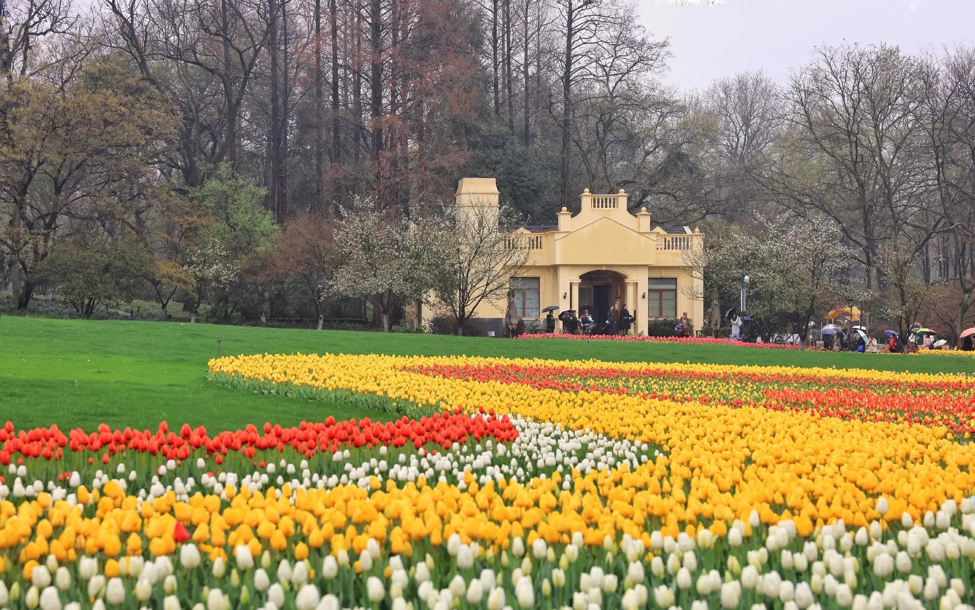 太子灣公園: 西湖景區的一部分,以春季的櫻花和鬱金香聞名,五彩斑斕的鬱金香與如雲似雪的櫻花交相輝映,將公園裝點成絢麗的油畫世界。