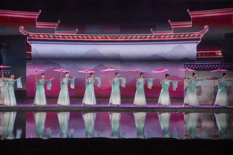 《徽秀》表演: 整場表演融合了徽劇、黄梅戲、舞蹈、雜技等多種藝術形式,讓人仿佛置身於故事情節之中。