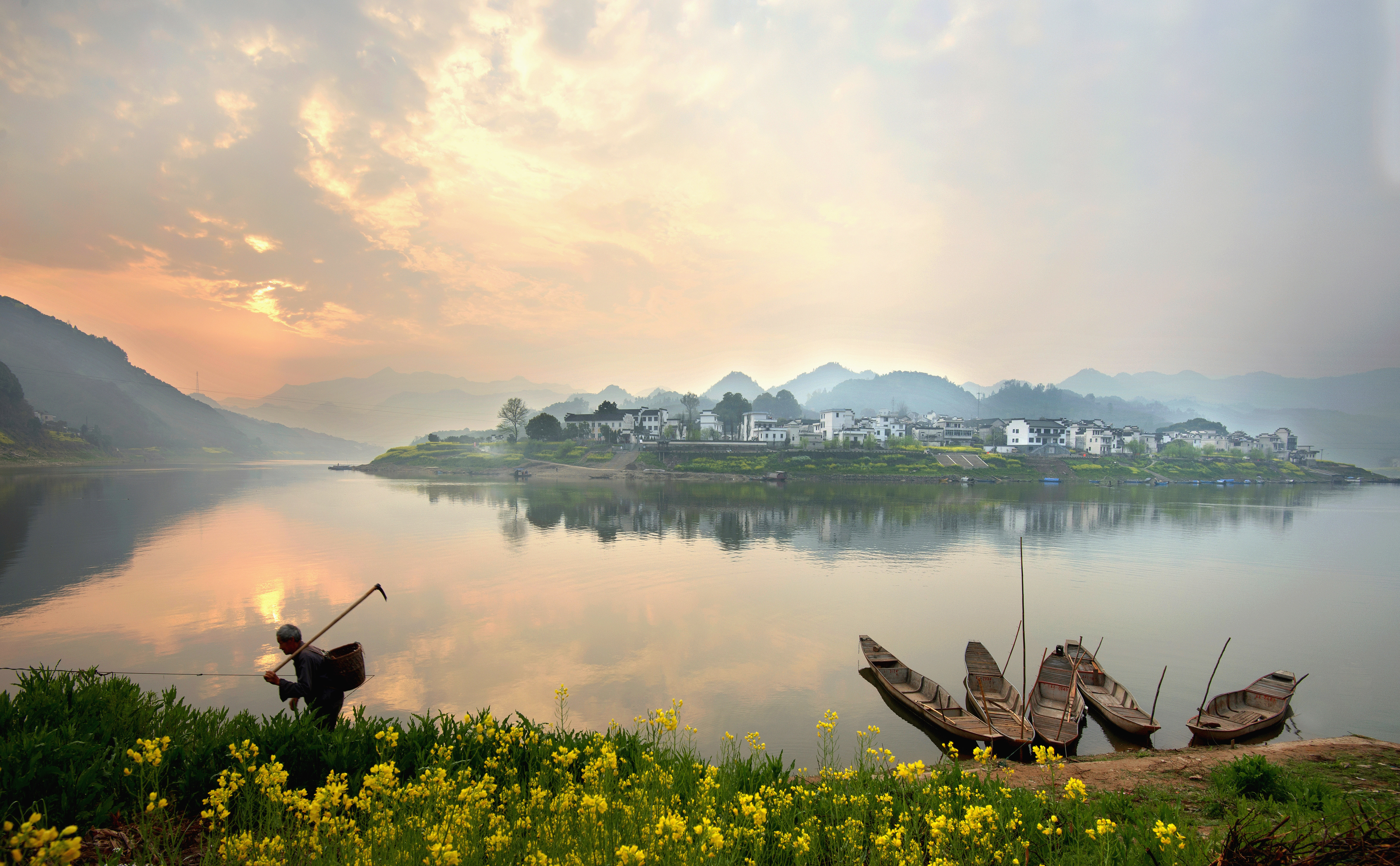 新安江山水畫廊: 乘船欣賞兩岸的徽派村落、青山綠水與油菜花海,視野開闊,景致壯麗。