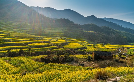 篁嶺梯田: 被譽為「全球十大最美梯田」之一,陽春三月,山間油菜花全面盛開,千畝梯田油菜花同時綻放,漫山遍野。