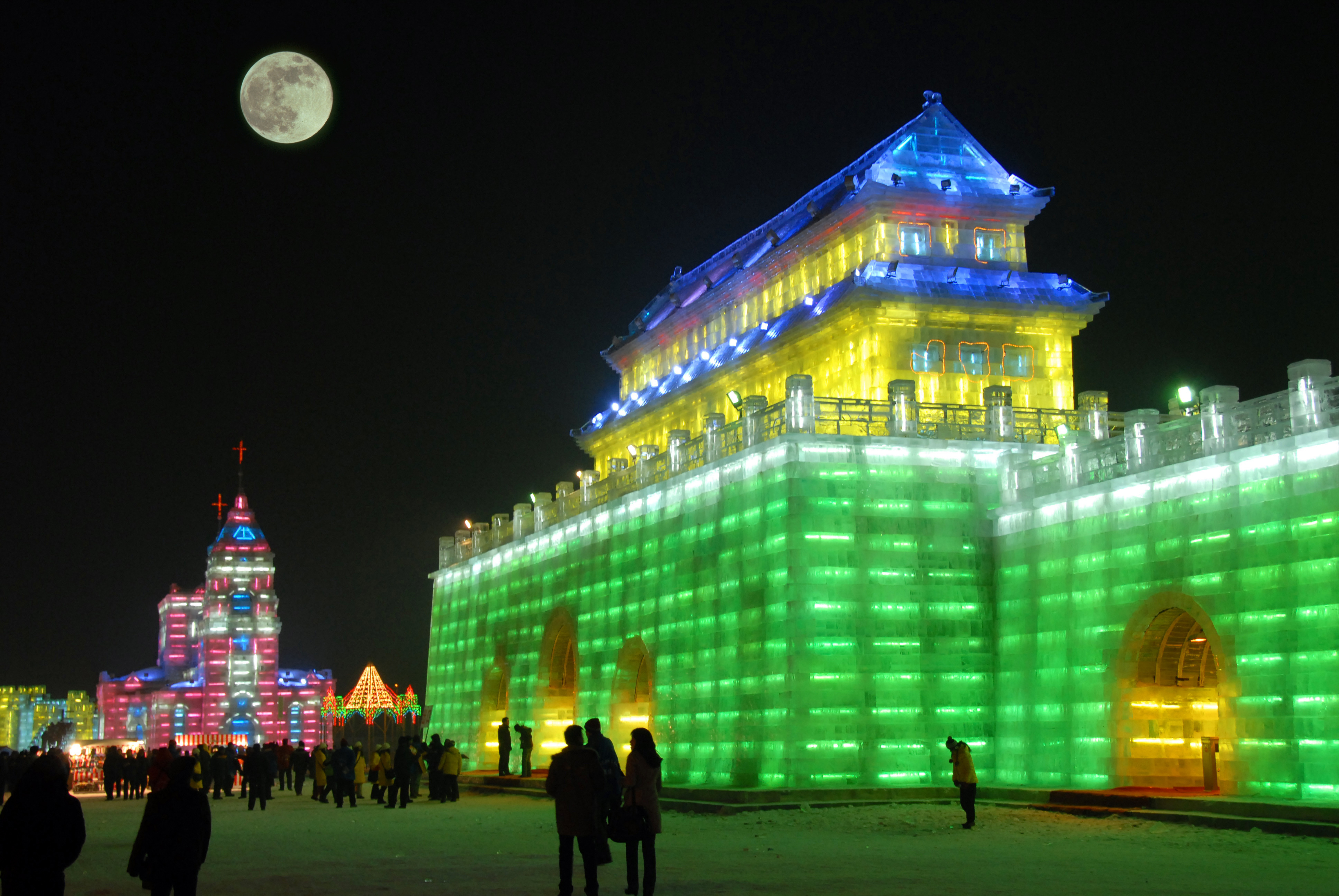 每年都會有新的主題。園區內有各樣冰上項目,晚上五顏六色的燈開放時,如同置身冰燈里的童話世界。