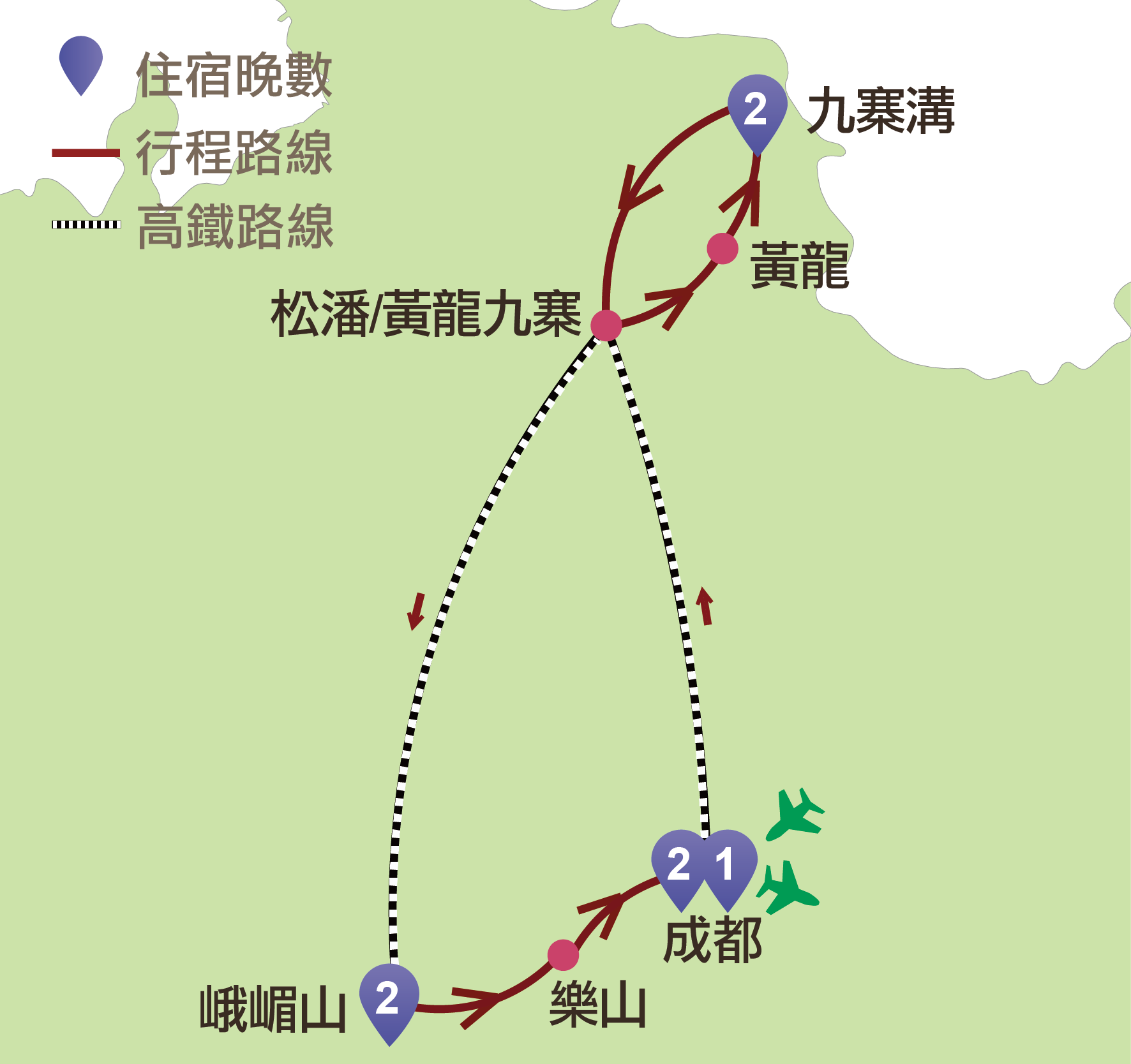 成都、黃龍、九寨溝、峨嵋山、金頂、樂山、眉山、都江堰