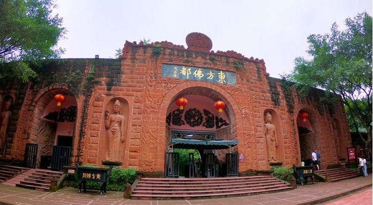 東方佛都: 在凌雲九峰之四峰。佛都循古蹟恢復舊貌,保留唐代山林風貌,依山取勢、高低錯落、林隱千佛、洞中百窟。