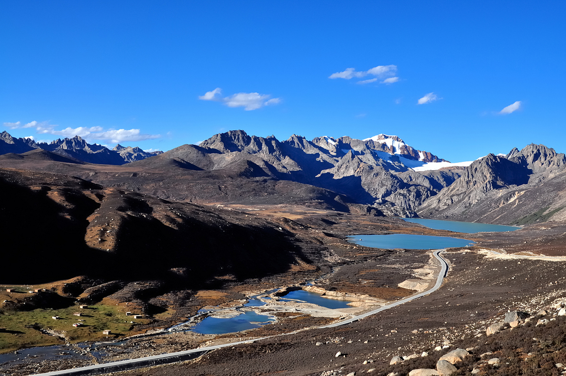 卡子拉山: 埡口海拔約4718米。因海拔較高,樹木就更加稀少,主要是高山草甸。山勢層巒疊嶂,直至天邊。
