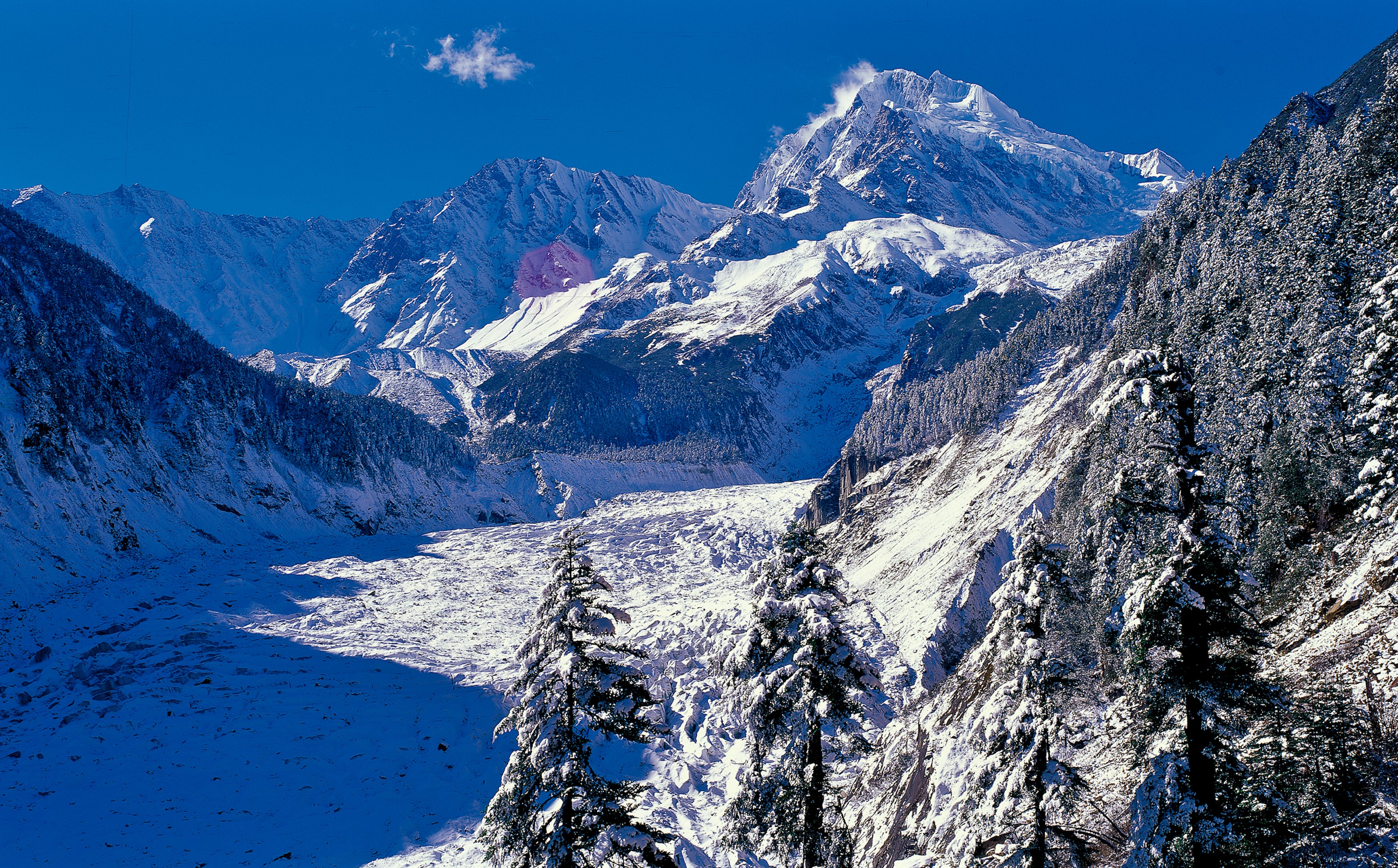 海螺溝: 位於貢嘎山東坡,以低海拔現代冰川、大冰瀑布、森林、雲霧、紅石灘和高山溫泉而著稱。