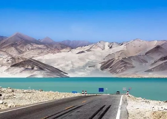 喀拉庫勒湖*1: 海拔3600米,是一座高山冰蝕冰磧湖。崑崙山脈被三大山峰將湖環抱,是世上少有的高原湖泊。