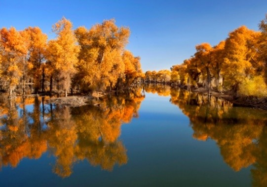 #塔里木胡楊林景區: 集塔河胡楊及沙漠景觀為一體,是世上古老、面積大、保存完整而又原始的胡楊林保護區。