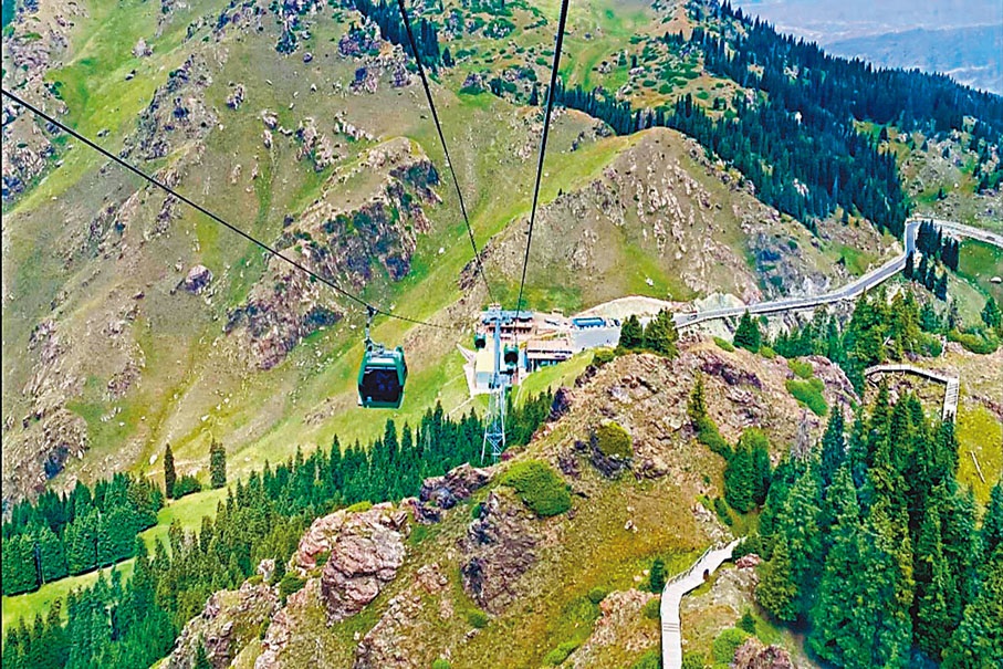 天山天池: 古稱“瑤池”,是天山東段柏格達峰北側的一個半月形湖泊,四周群山環抱,雲杉蒼翠,猶如仙境。