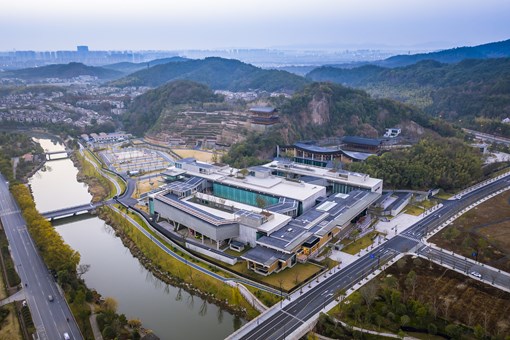 良渚博物館: 由英國著名建築師大衛·奇普菲爾德設計,建築風格簡潔,融合藝術與自然、歷史與現代,體現和諧共融。