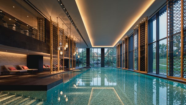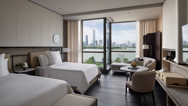 靠近著名的西溪國家濕地公園龍舌嘴入口,環境幽靜,酒店設計融合了西溪濕地的自然原貌與東方美學,整體呈現自然寧靜的度假氛圍。