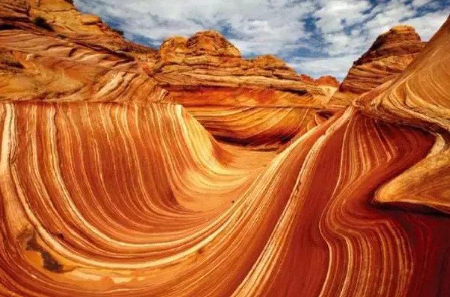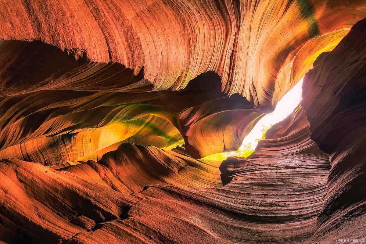波浪谷: 是中國罕見的紅砂岩峽谷奇觀,經億萬年風雨侵蝕形成的丹霞地貌,以其流暢的波浪式紋路聞名。玻璃棧道可以俯瞰赤壁丹霞全貌。