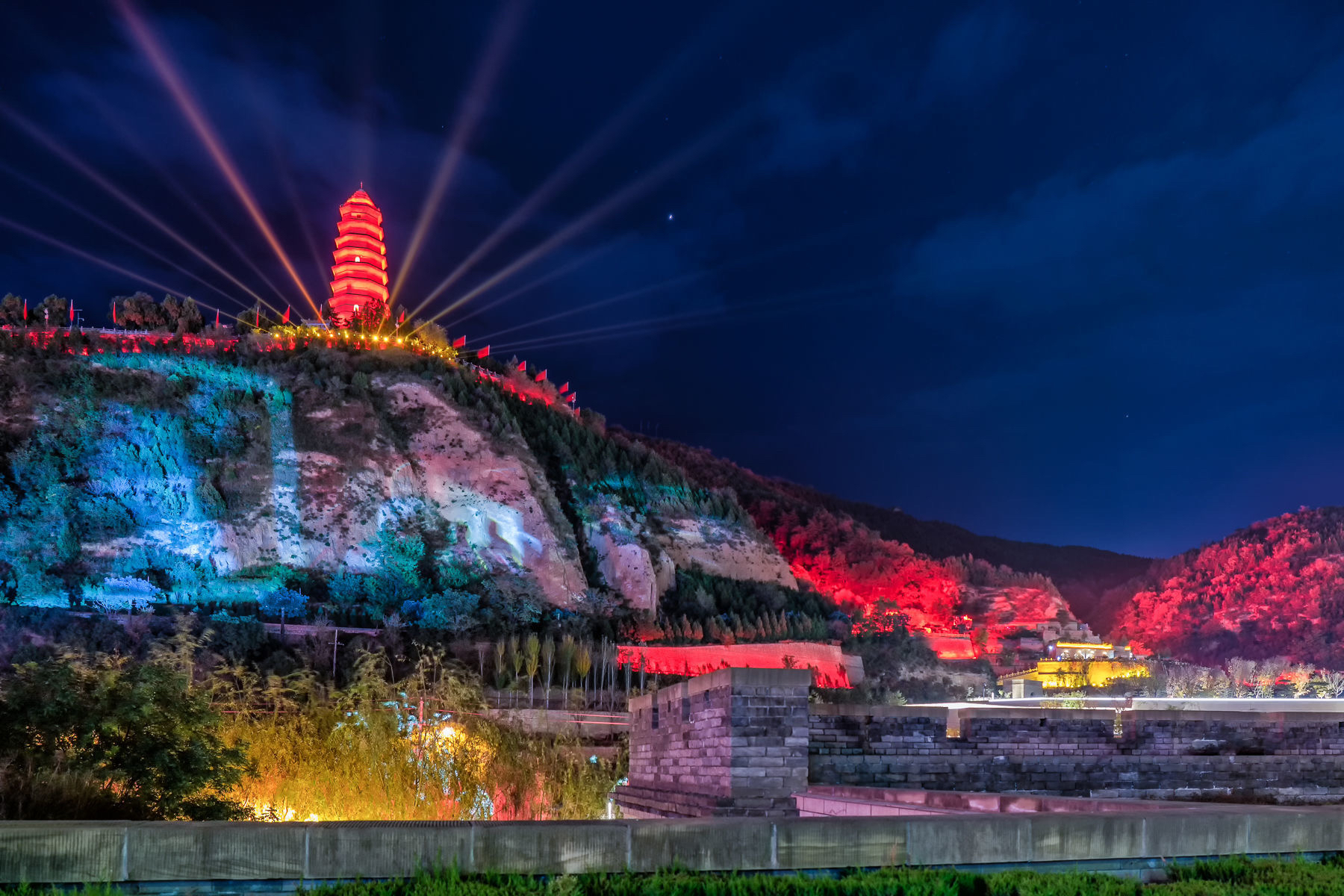 寶塔山夜景: 以其震撼的燈光秀聞名,結合聲光技術演繹兩萬五千里長征歷史。