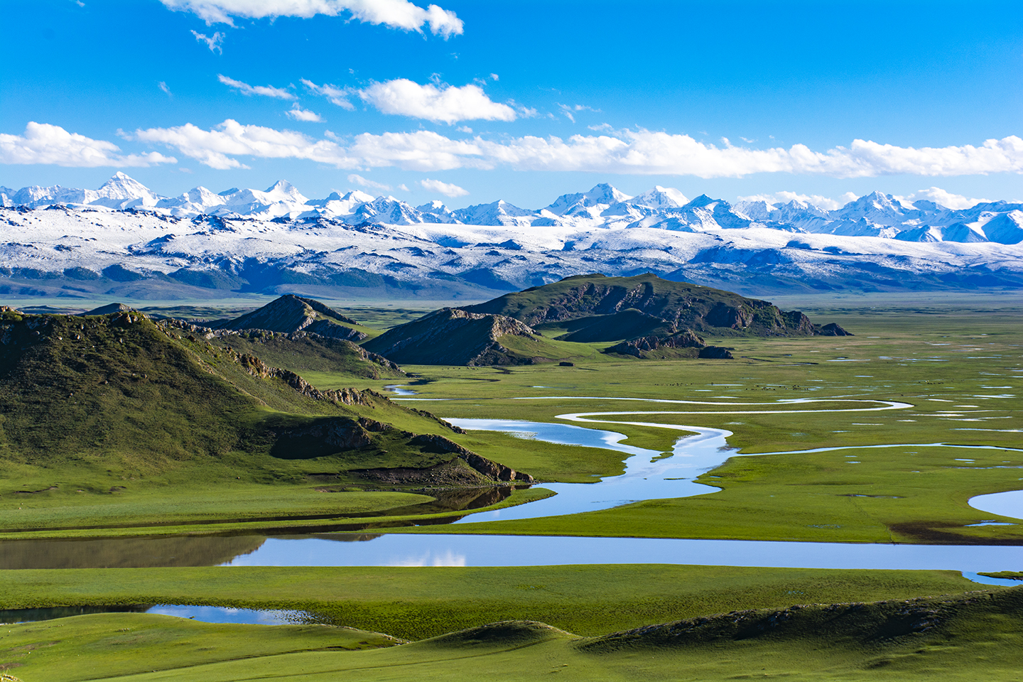 九曲十八灣: 巴音布魯克草原上有很多河流。蜿蜒在草原上的開都河,有“九曲十八彎”的美稱,為巴音標誌性景觀。