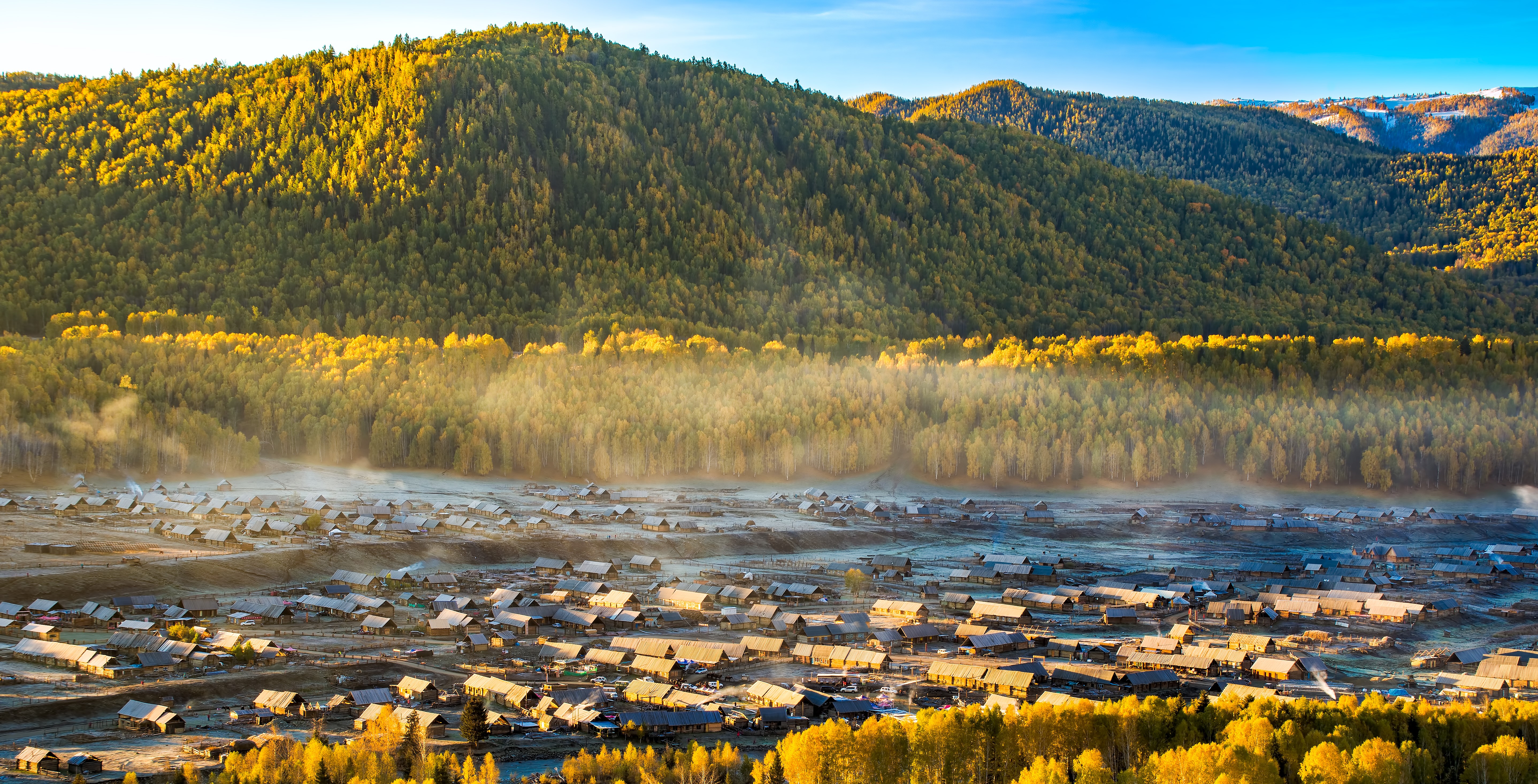 禾木村: 是圖瓦人聚居村落,不僅兼具阿爾泰山的靜謐靈秀,擁有木屋、溪流、白樺林交織的自然風情與圖瓦族原生底蘊,更以“神的自留地”極致風光和星空下的村落秘境。