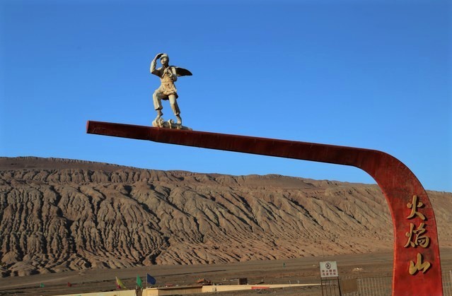 火焰山: 為天山支脈之一,形成於五、六千萬年前的喜馬拉雅運動時期,火焰山是中國最熱的地方,夏季溫度最高可以達到47.8℃,火焰山山體陽面地表最高溫度可達82.3℃。