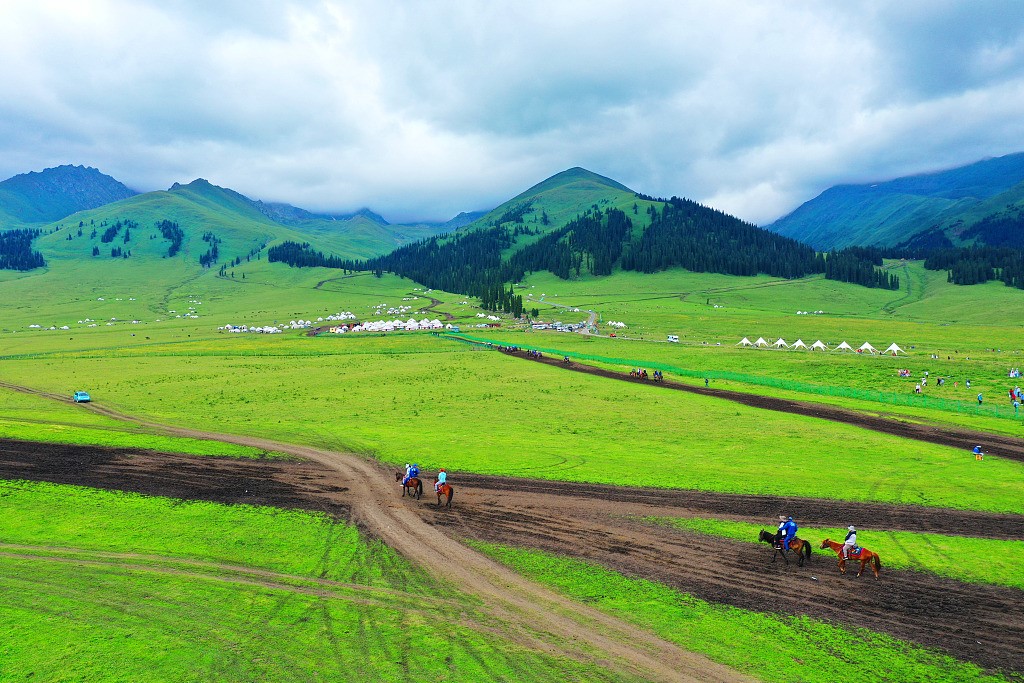 那拉提草原: 位於天山山脈中段的高山盆地,主要聚居哈薩克族人。夏季水草茂盛,被稱為空中草原。