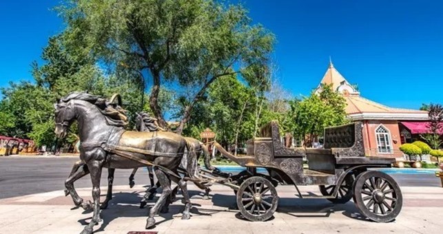 有全球最大汗血馬基地,擁有各種名馬數百匹批,還有中國最大的矽化木群。
