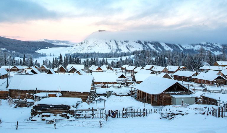 是喀納斯景區主要的組成部份,一個由哈薩克人和圖瓦人共同聚居的小村莊,房子全是原木搭成的。