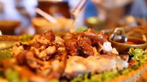 傈僳文化底蘊濃厚、酒文化突出。而位於雲峰山腳下的傈僳人家是一個具有濃郁名族風味的餐廳,來到這裡才能切身感受,雷鳴般的「雷響茶」,美酒配佳餚的「土司宴」,載歌載舞的篝火舞會。