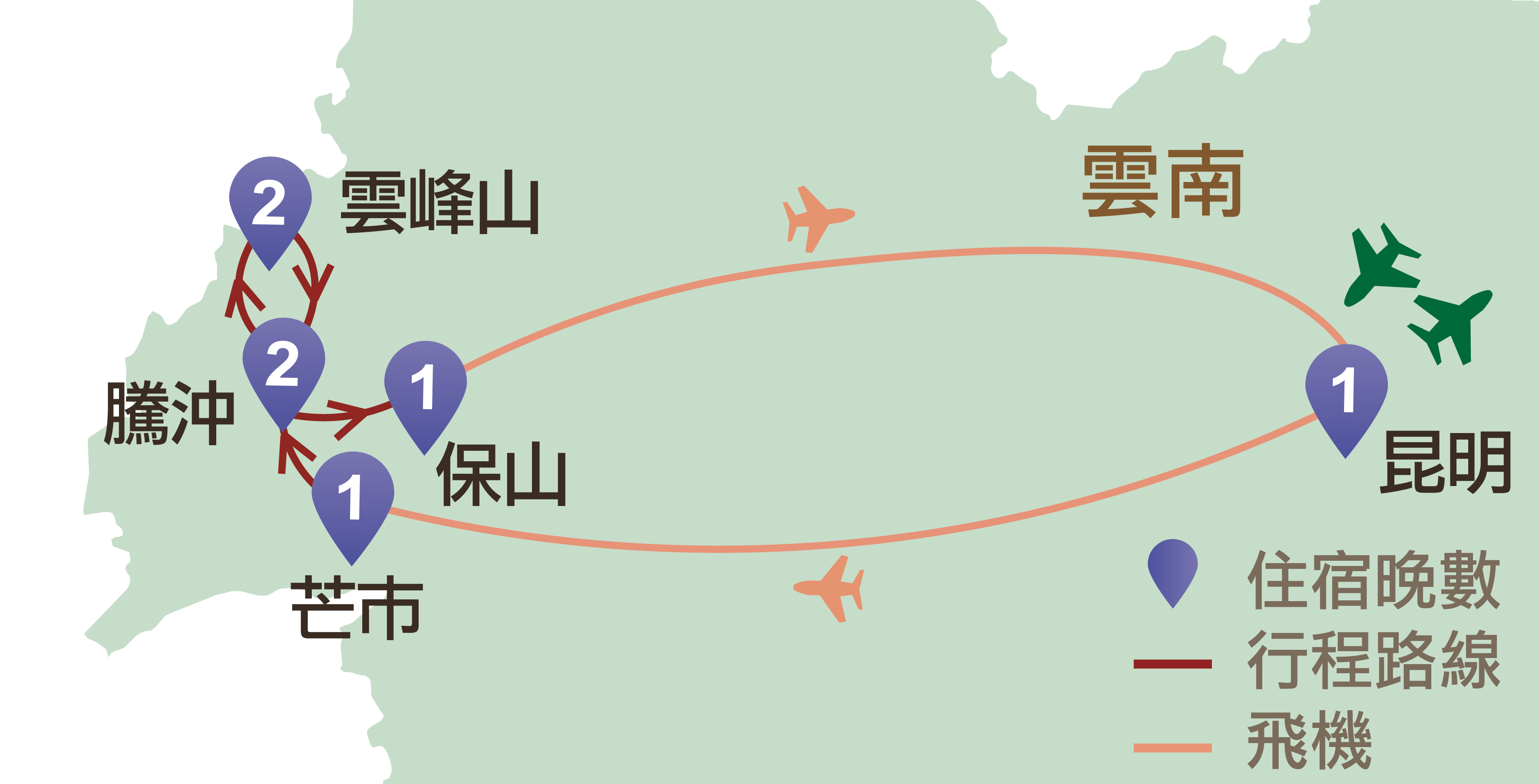 昆明、芒市、騰沖、雲峰山、保山