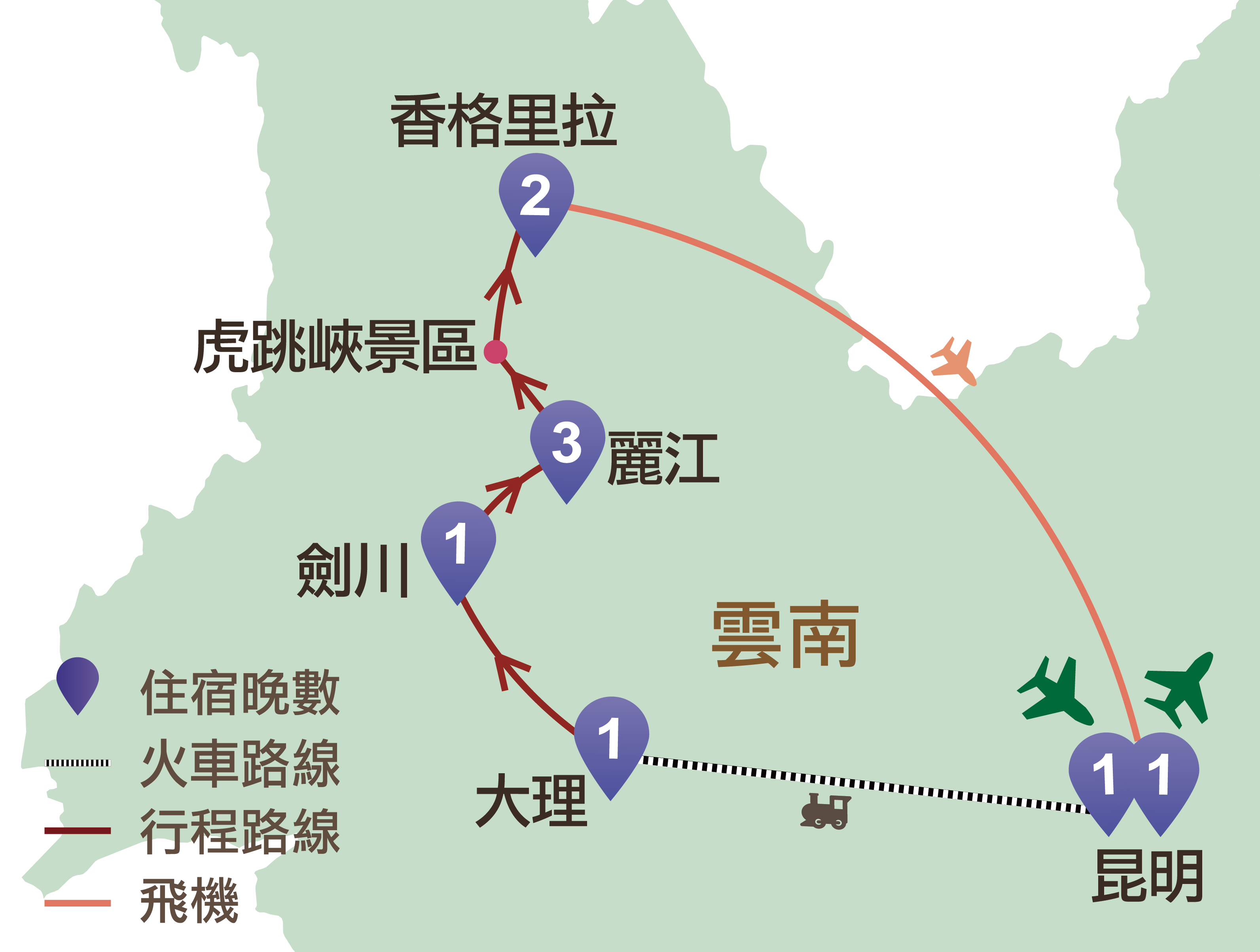 昆明、大理、劍川、麗江、香格里拉