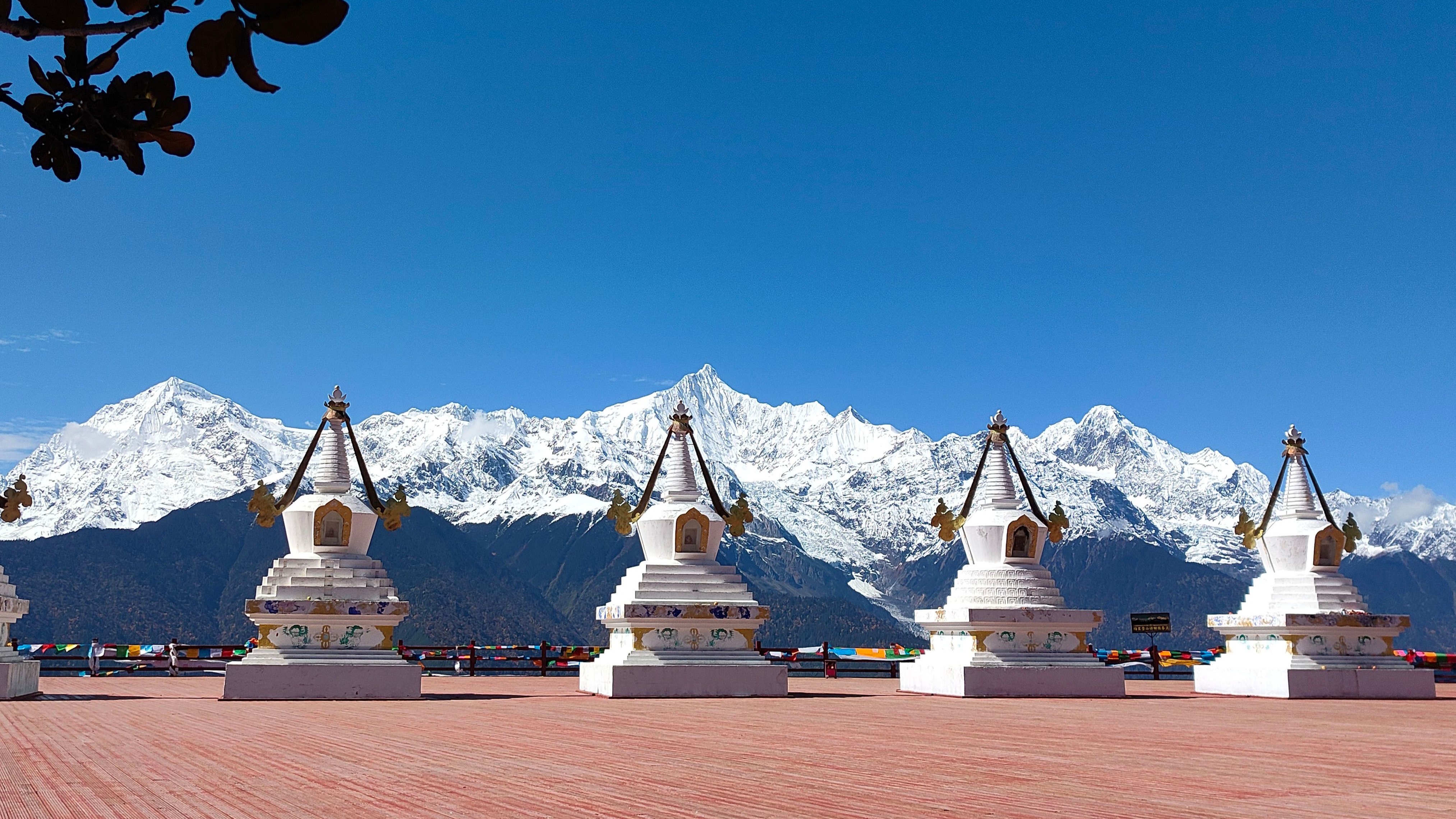 飛來寺: 是欣賞梅里雪山「日照金山」奇景的頂級位置,十三峰連綿壯觀。