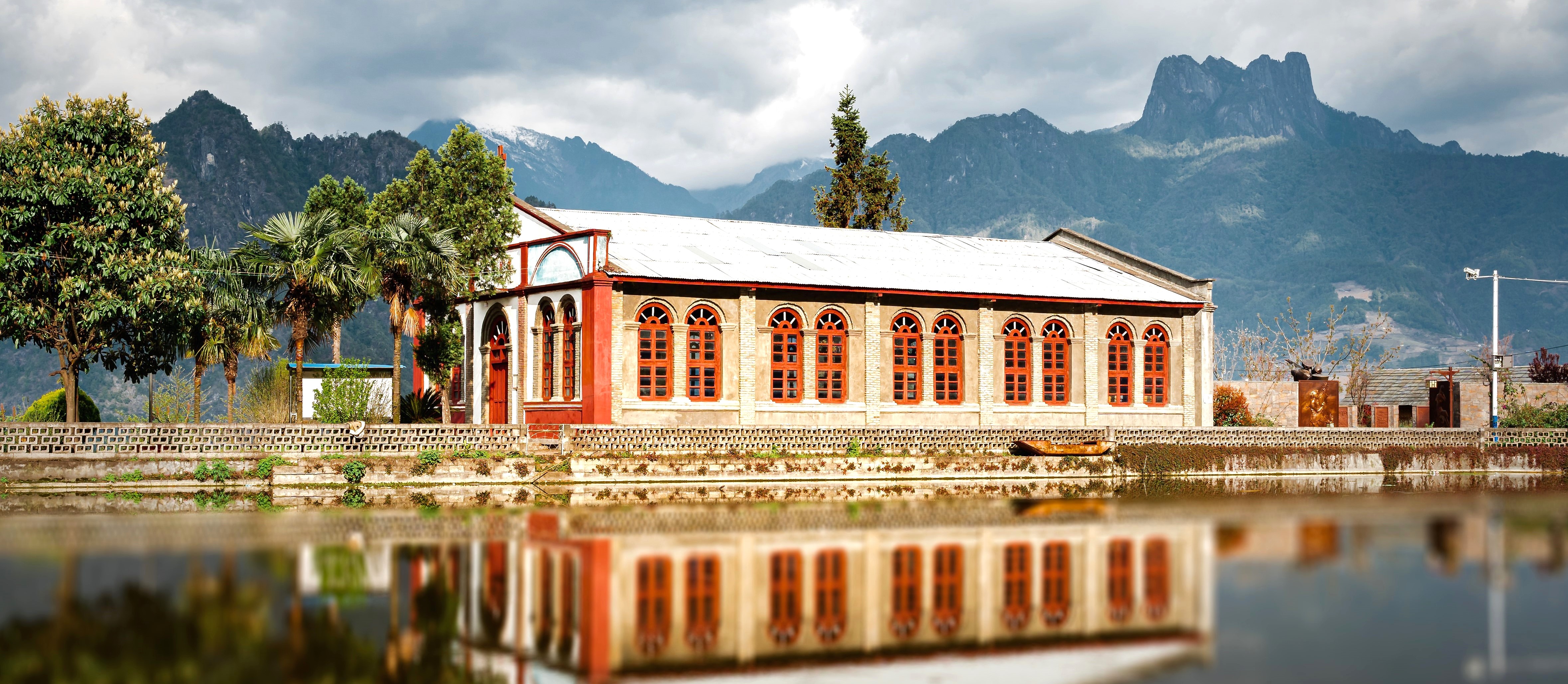 基督教堂: 老姆登村內一座標誌性教堂(紅白相間),建於20世紀初,是怒江地區最古老的教堂之一。