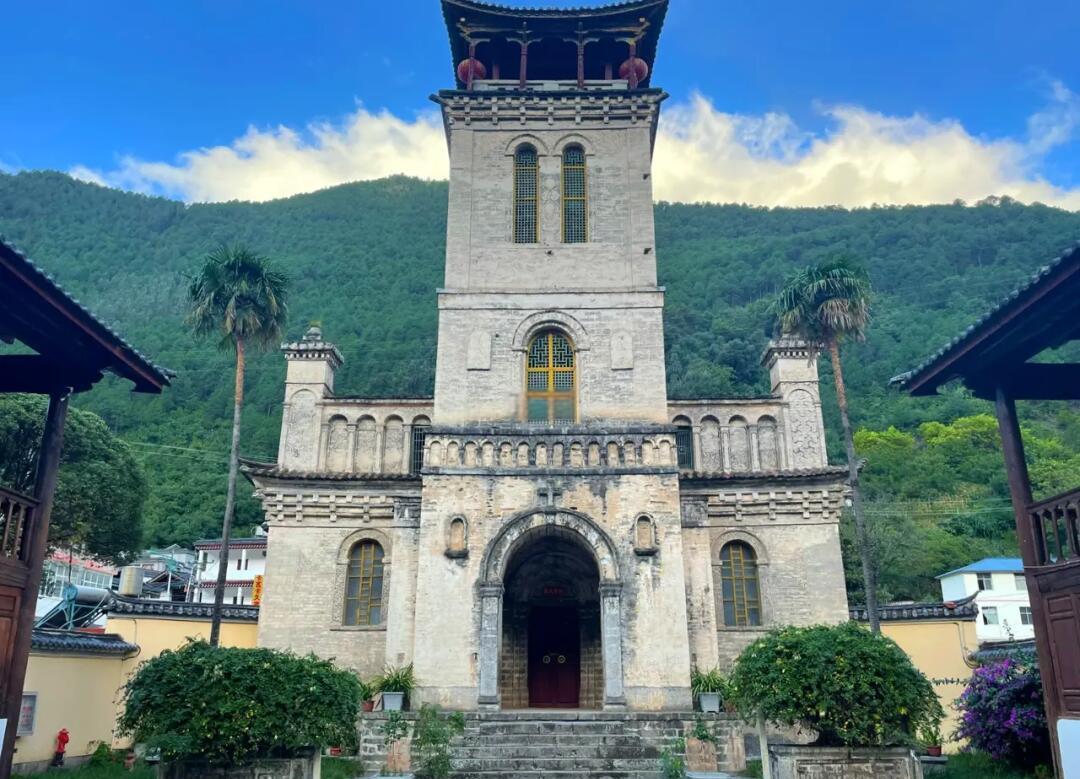 茨中教堂: 是中西合璧的磚木結構建築,由法國傳教士始建於清同治六年(1867年),曾遭焚毀後於1909-1921年遷至現址重建,成為「雲南鐸區」主教禮堂。