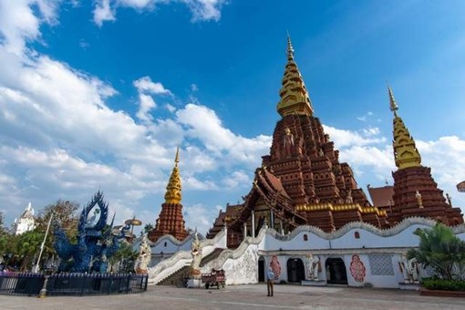 是古代傣王朝的皇家寺院「景飄佛寺」原址重建。更可看到孔雀放飛,數百隻孔雀從山頂傾瀉而下,藍色的尾羽在陽光下閃爍,彷彿闖進了奇幻世界。