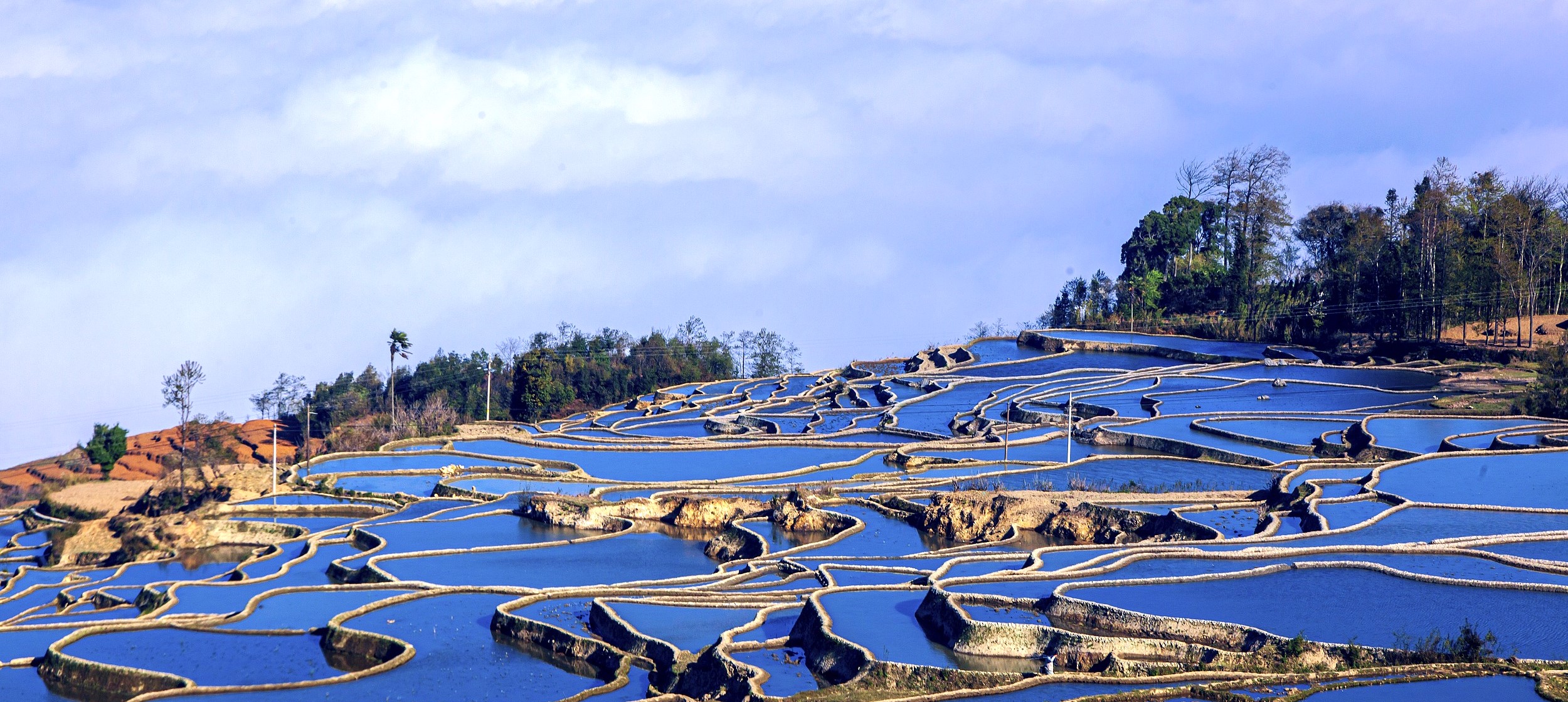 愛春藍梯田: 又名藍色梯田,梯田的水映襯了天的藍色,天光雲影共徘徊,水天一色,頗為好看。