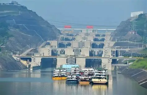 三峽大壩五級船閘: 位於大壩左側,是世界上連續級數最多、總水頭最高的內河船閘之一。它與三峽升船機一同運行,為船舶提供過壩的通道。船閘的上下落差達到113公尺,相當於約40層樓的高度。