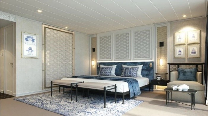 - 全船148人的標準載客人數,僅有74間套房。遠低於長江遊輪普遍300-600人的載客量,讓貴賓擁有更寬敞的空間。