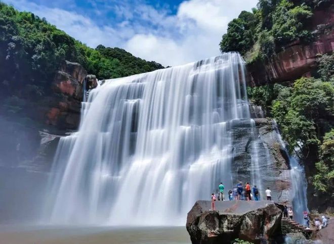 赤水大瀑布景區: 是全中國丹霞地貌上最大的瀑布,也是中國長江流域上最大的瀑布。瀑水從懸崖絕壁上傾瀉而下,似萬馬奔騰,氣勢磅礴,幾里之外聲如雷鳴,數百米內水霧瀰漫,陽光照射之下,呈現五彩繽紛的彩虹。