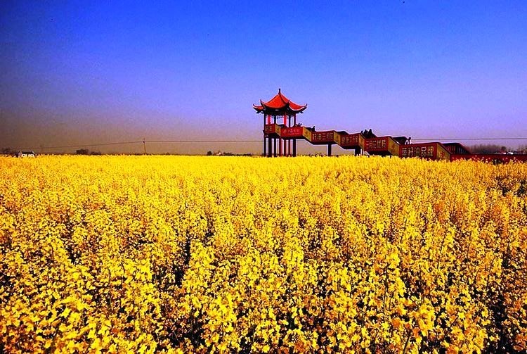 鮑家屯油菜花#: 油菜花田面積上千畝,成片油菜花連接起來,如同花海一般。村寨每年都會舉辦油菜花節,吸引眾多遊客。