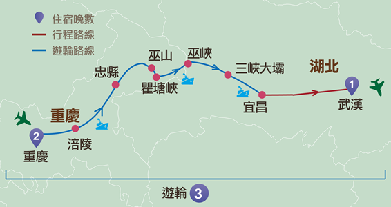 重慶、奉節、巫峽、瞿塘峽、三峽大壩、宜昌、武漢