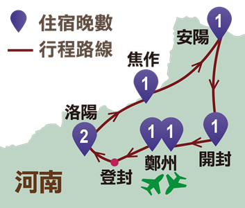 鄭州、登封、洛陽、焦作、安陽、開封