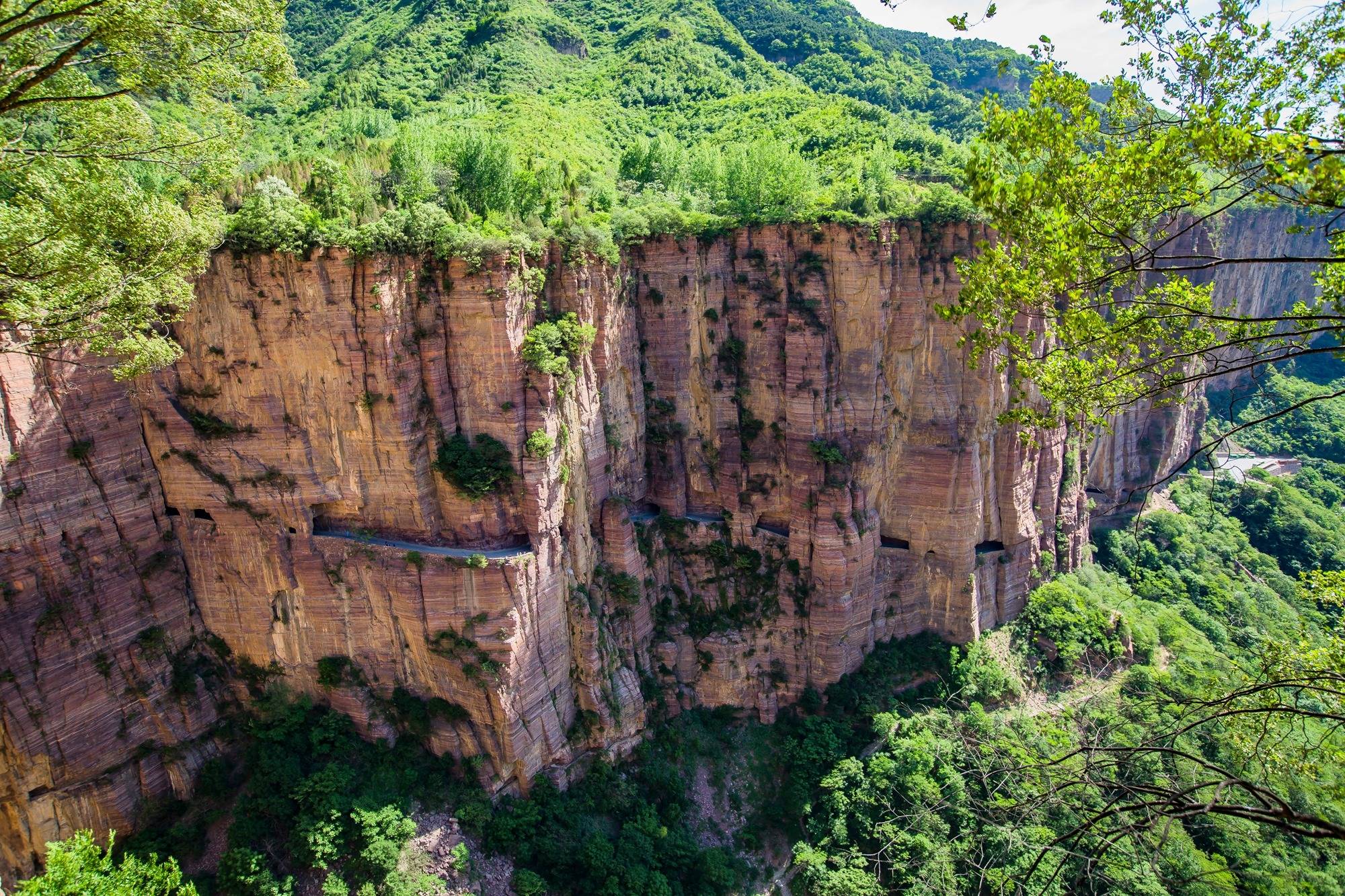 絕壁長廊: 全長1200米,是1970年代村民靠鋼釺鐵鎚在懸崖上開鑿出的奇蹟道路,是南太行第一個橫穿絕壁的隧道,號稱「太行隧道之父」。
