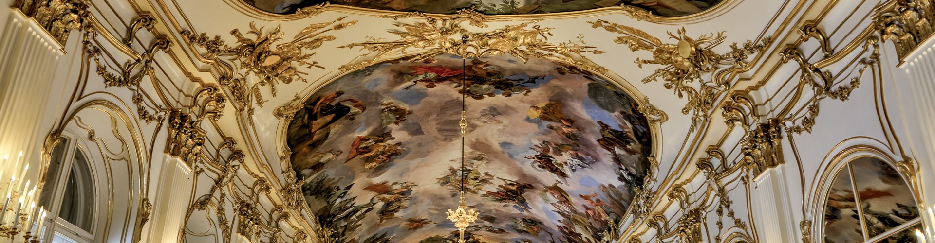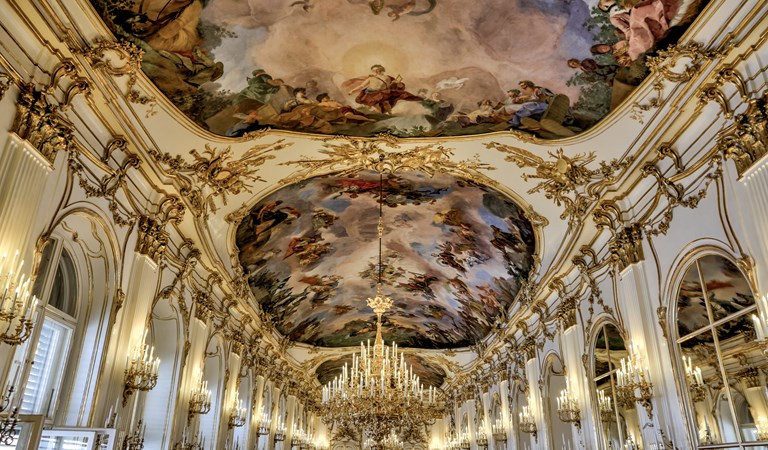 號稱是奧地利巴洛克建築之珠,長廊壁上 均為巨幅繪畫,石柱神像雕工之精美,以及屋頂之壁畫環繞,無一不顯示出巴洛克時期的藝術極致。