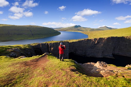 法羅群島最大的湖泊,湖泊位於海拔30公尺高的懸崖邊緣,形成令人震驚的視覺效果,這一自然奇觀吸引很多人前來觀欣賞。可在步行旅程中於不同距離觀賞Sorvagsvatn湖。