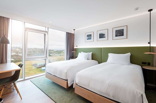Hilton Garden Inn酒店於2021年開業,坐落在托爾斯港市中心,方便遊客探索周邊的自然美景和文化景點,如Svartafoss瀑布和法羅群島國家博物館。