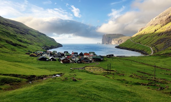 被喻為法羅群島最美麗的三條古老村落,村莊以其獨特的地理位置而聞名,古老的草皮屋頂教堂和草皮小屋被陡峭山脈包圍的潟湖的美景。