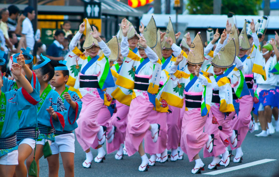 日本四國地區最具代表性的祭典之一,以其活力四射的舞蹈和音樂而聞名,參與者穿著色彩繽紛的傳統服裝,隨著音樂跳舞,展現出獨特的舞蹈風格。